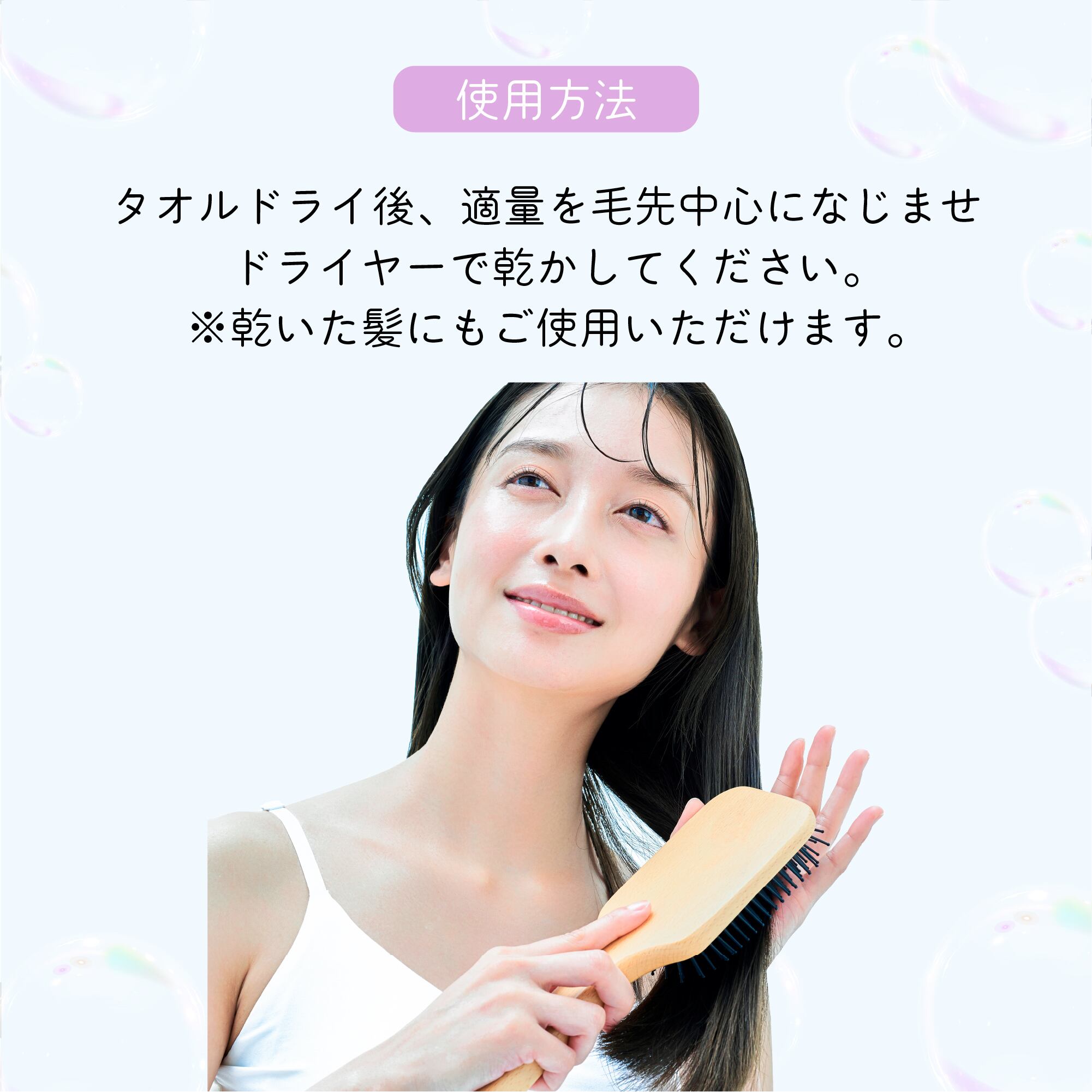 シャンプー後の濡れた髪になじませて乾かすだけ。